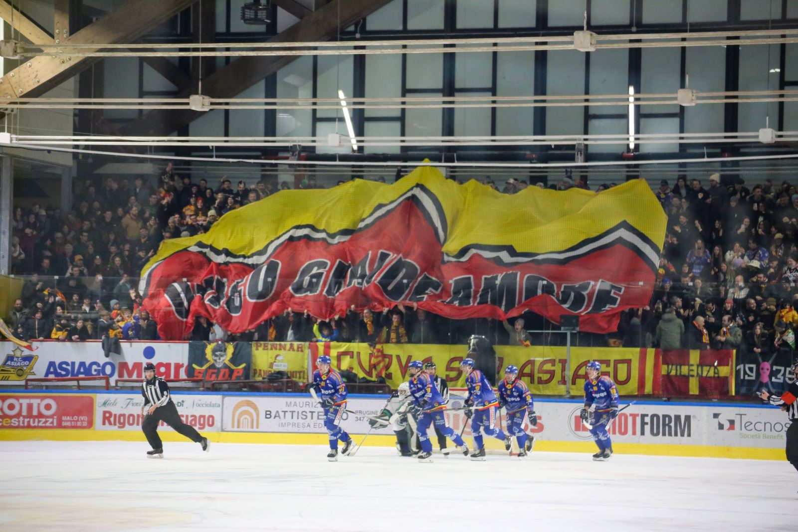Le squadre vanno al primo intervallo con l’Asiago in vantaggio per 1:0, risultato che sta stretto agli stellati, in virtù di quanto visto sul ghiaccio in questa prima frazione.