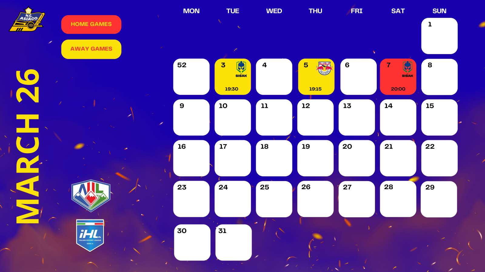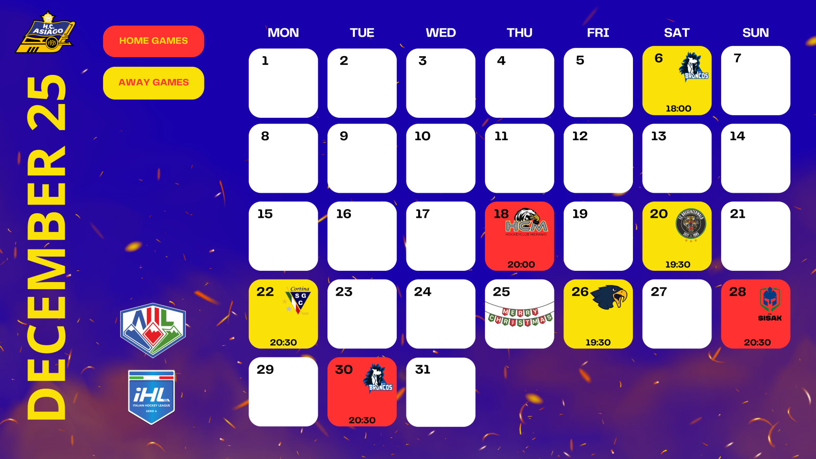 Calendario ALPS Hockey League – IHL Serie A 2025/26