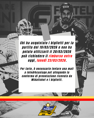 Chi ha acquistato i biglietti per la partita del 19/03/2026 e non ha potuto utilizzarli il 20/03/2026 può richiedere il rimborso entro oggi, luned&igrav...[read]